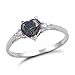 Jewelry is crafted of lustrous sterling silver and features a sparkling heart shaped rainbow mystic topaz cz center stones and highlighted with two round clear cubic zirconias. Ring measures 7mm long x 2mm wide. Read more