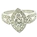 Vintage Victorian style engagement ring features a long oval face with a .75carat round cubic zirconia center stone, accented by smaller stones in a web of sterling silver. Read more