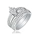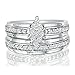 This marquise diamond engagement ring with matching wedding band is bold, beautiful, and affordable.With .45ct of shimmering round diamonds, including the .25ct in the engagement ring and .20ct in the band. The diamonds have an SI2-I1 clarity and in I/J color. Mounted in solid 10k white gold setting. Available in ring sizes 4 to 8 with 1/2 sizes. Read more
