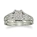 Get one of today's most stylish looks, without spending your entire holiday bonus!You get both a beautiful diamond engagement ring and simple wedding band. This micropave diamond bridal set has ten shimmering diamonds with a total weight of .05ct in J/K color, I2 clarity. One star diamonds. Read more