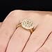 * Our Inspired by Twilight Engagement Ring: Bella's Wedding Ring - Gold was created to resemble the ring as described in Eclipse! * We polled fans on our blog to determine if this design was the best - results were split but over half of the entries were in favor of this style! * Face of the ring is a "long oval, set with slanting rows of glittering round stones", just like the quote from the book! * Gold plated sterling silver forms a "fragile web" around the faux diamonds and surrounds the bezel set center stone. * Split band supports the long, narrow shape of the ring and makes for a comfortable fit. * Available in sterling silver or gold plated (book notes the ring as being gold, so go for the gold plated version if authenticity is important!) This item arrives in our premium Twilight themed gift box at no extra charge! Matte black box has shiny inlaid tree design. Perfect for presents - no gift wrap required! PLEASE NOTE: This jewelry is not manufactured, distributed or authorized by Stephenie Meyer, the official Twilight movie saga, the company Twilight Teez, LLC, or the company Runs with Vampires, LLC. This ring is not the authentic Bella's Engagement Ring authorized by Stephenie Meyer as offered by Twilight Teez, LLC. For further information please refer to the following links: http://www.stepheniemeyer.com/twilight.html http://twilightthemovie.com/ http://www.twilightteez.com/ http://www.runswithvampires.com/ Weight: 5.2 g Metal: 14k gold plated .925 sterling silver Stone: Cubic Zirconia Carat: Round cut CZ approx .015 carats (1.5 mm), round cut CZ approx .005 carats (1 mm) Measurements: 15 mm (.59 in) x 19 mm (.75 in) x 5 mm (.20 in) bezel Read more