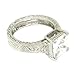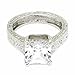 Crafted in a style that endures, this ring says: "Love is here to stay"! The solitaire is a White Diamond CZ set with four high polish prongs. The square Radiant measures 8x8mm (= approx. 2 3/4 carats). The band, which is 4mm wide throughout, is engraved on all sides. The delicate scrolling pattern going all the way around adds a vintage flavor.