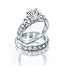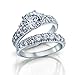 A lovely engagement and wedding ring set that will take your breath away. This stunning set is made from solid .925 sterling silver. The engagement ring features a brilliant 8mm round diamond CZ that sparkles from its 4-prong setting while a cluster of 2mm CZ stones gleam from wither side. The wedding band features a glittering row of 2mm CZ stones on over half of its band. Read more