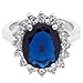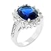 This designer inspired ring is made of white gold-plated alloy and is crowned by clear round-cut diamond CZ stones all around. The band is pave-set halfway around with diamond CZs for added glamour. A stunning blue sapphire center stone completes the piece. A sassy piece to add to your collection. Though not an identical reproduction, this ring is strikingly similar to the real thing. Be at ease when purchasing, this ring is made of top quality materials. Sizes 6 through 8 are available. Read more