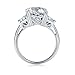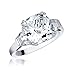 Charming 3-stone ring is set in sterling silver, plated with rhodium, and stamped with a quality mark "925". Dazzling cushion cut cubic zirconia center stone weighs 3.8 carat, accented with 2 baguette cut cubic zirconia side stones that weigh 0.4 carat in total. Band measures 2-3mm. Berricle.com style number #r172. Read more