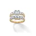 2 Carat Diamond Round 14k Gold overlay Bridal Ring Set. This pretty bridal ring set features an engagement-style ring and a wedding-style band set with sparkling round-cut white diamond accent simulant. The rings are both crafted of 14-karat yellow gold overlay with a highly polished finish. Gemstone colors: White. Gemstone shapes: Round. One prong-set round-cut clear diamond accent man made measures 6.11 mm. Gemstone weight: 7/8 carat. 10 prong-set round-cut clear diamond accent man made each measure 3.3 mm. Gemstone weight: 1 3/4 carats. Total gemstone weight: 2 1/2 carats. Metal: Gold overlay. Finish: High polish. Ring setting dimensions: 4.3 mm high. Band: 2.5 mm wide. Wedding band: 2.5 mm wide. Available Ring Sizes: 5, 6, 7, 8, 9, 10. Read more