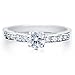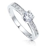 This beautiful solitaire ring with side stones is made of fine sterling silver, plated with rhodium, and stamped with a 925 quality mark. Striking prong set, round cubic zirconia center stone weighs 0.46 carat (5mm). Accented with 8 dazzling pave set, round, cubic zirconia side stones that weigh 0.16 carat in total. Band measures 2.1mm-2.6mm. Berricle.com style number #r381. Read more